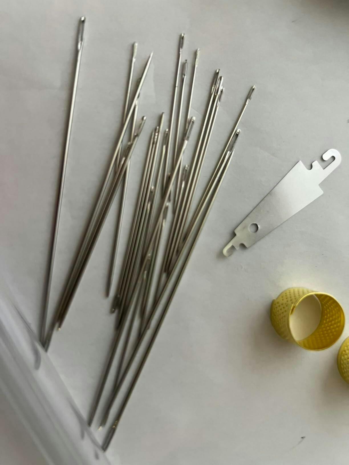 - āļøĀ USER-FRIENDLY DESIGNĀ ā Needles have a large eye for easy threading, while sharp tips penetrate fabric smoothly. A needle threader and thimble make the process safer and easier.
