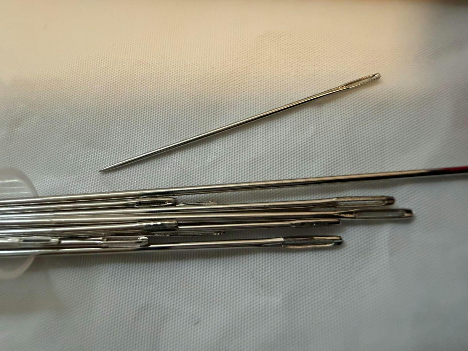 These needles are large and strong!! I kept seeing the ad for them and got tired of my small needles breaking when trying to sew things thicker so I finally bought them and wish Iād have bought them sooner!!!