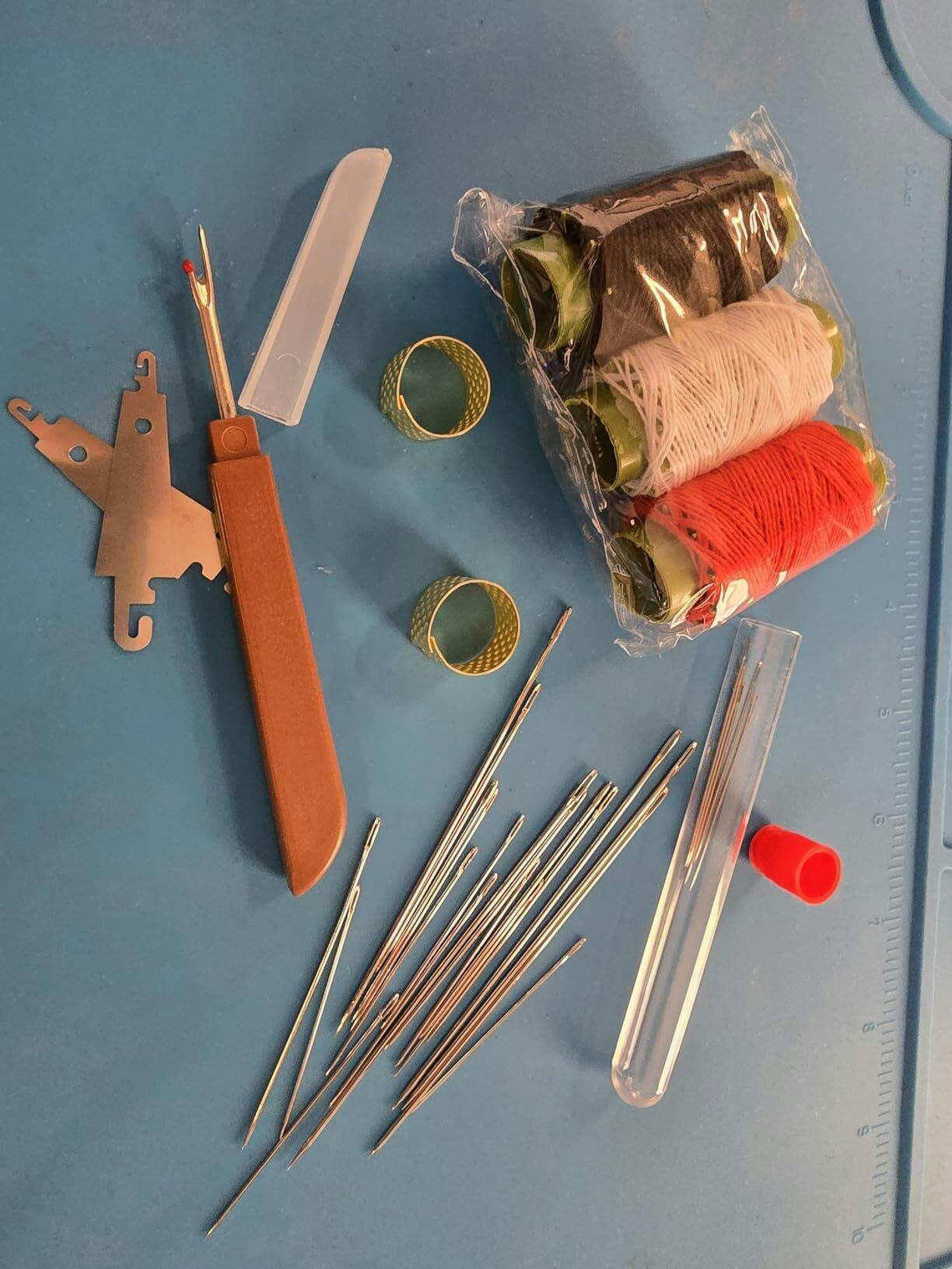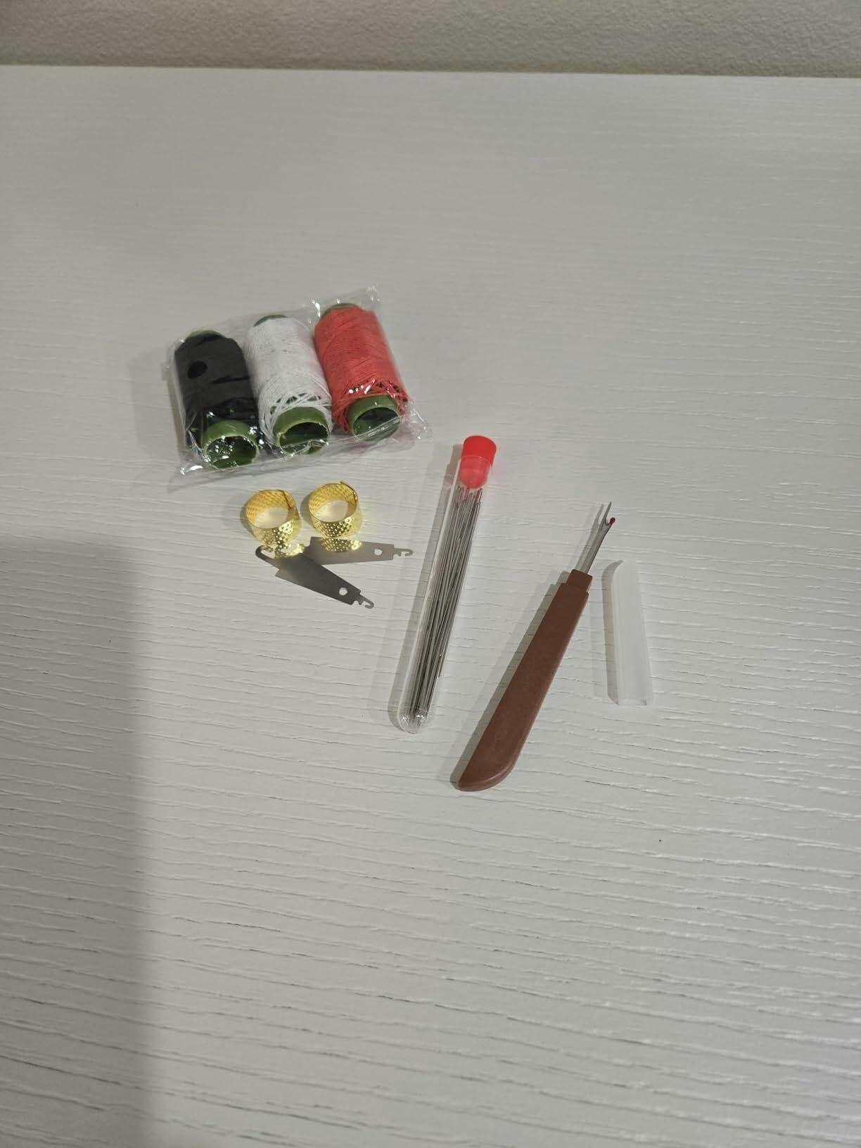 The needles are sharp and easy to thread, and the included thimble really helps protect my fingers. The variety of thread colors is super practical.