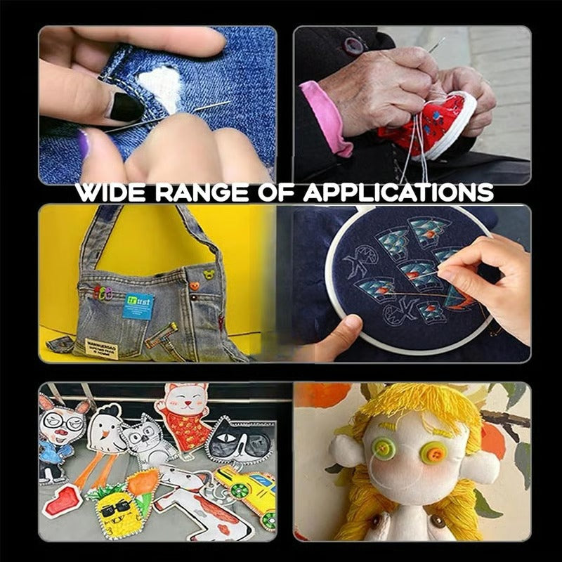 - šØMULTIPLE USESĀ ā Ideal for clothing repairs such as fixing loose buttons, mending tears, hemming pants, or repairing jeans. Also great for creative projects like embroidery, plush doll making, and DIY crafts.