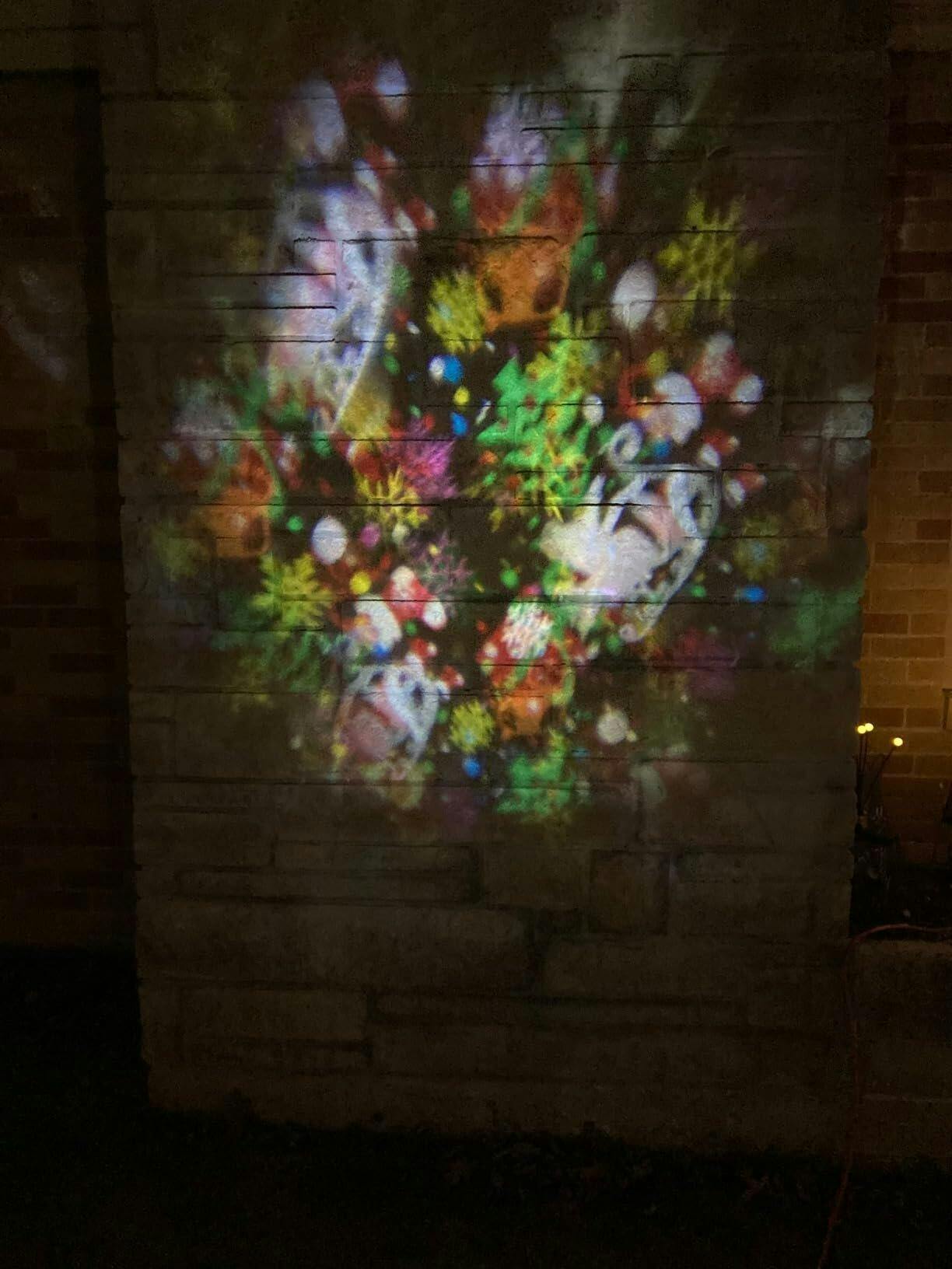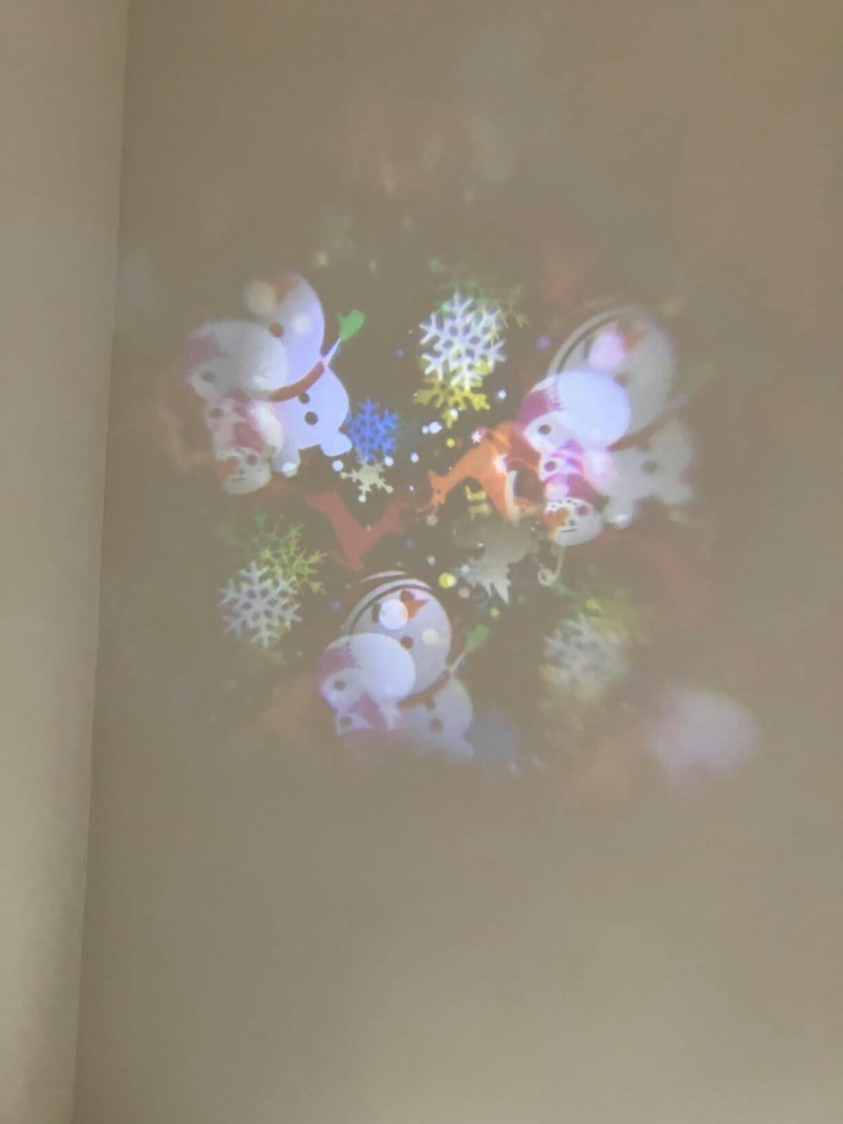 This LED projector is small but it produces a beautiful array of colorful snow flakes and snow men. Very beautiful